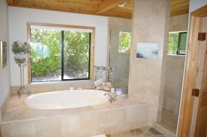 This extensive remodel to the whole house meant a completely new kitchen with all new cabinets and appliances. Windows were wrapped in cedar and maple floors were installed, along with exterior clear cedar lap siding. The addition portion included a master and guest bath.